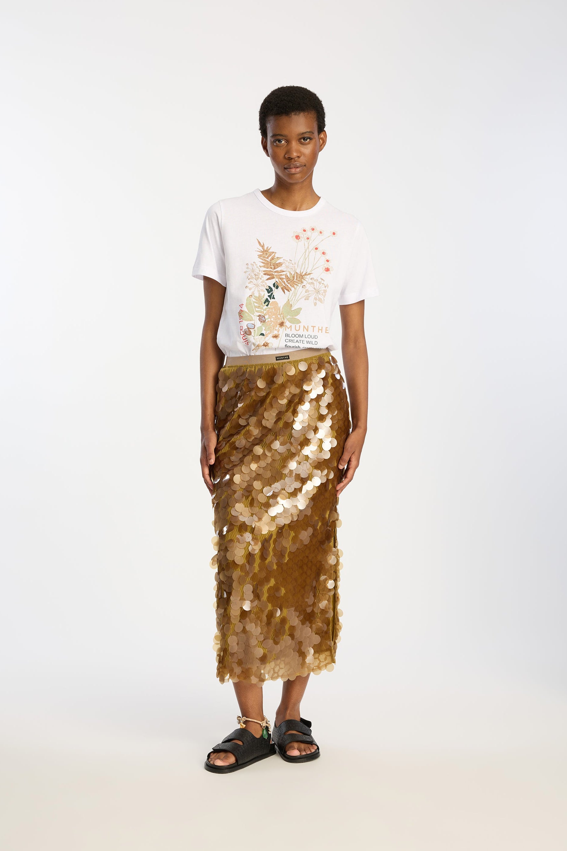 T-shirt with artistic nature print and text, The t-shirt has a loose fit, round neckline and short sleeves.