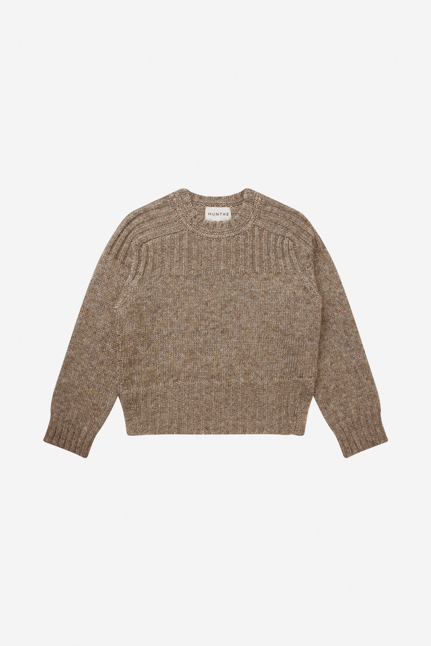 Knit designed with beautiful ribbed details and an elegant slit at the sides. This knit features long sleeves and a round neckline.