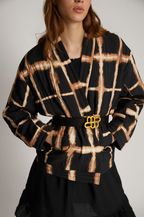 Elegant quilted jacket in a beautiful all-over print. The jacket is designed with long sleeves, a hidden button closure at the front, and slit pockets at the sides. The jacket can easily be styled with the Munthe Matter belt (belt not included).
