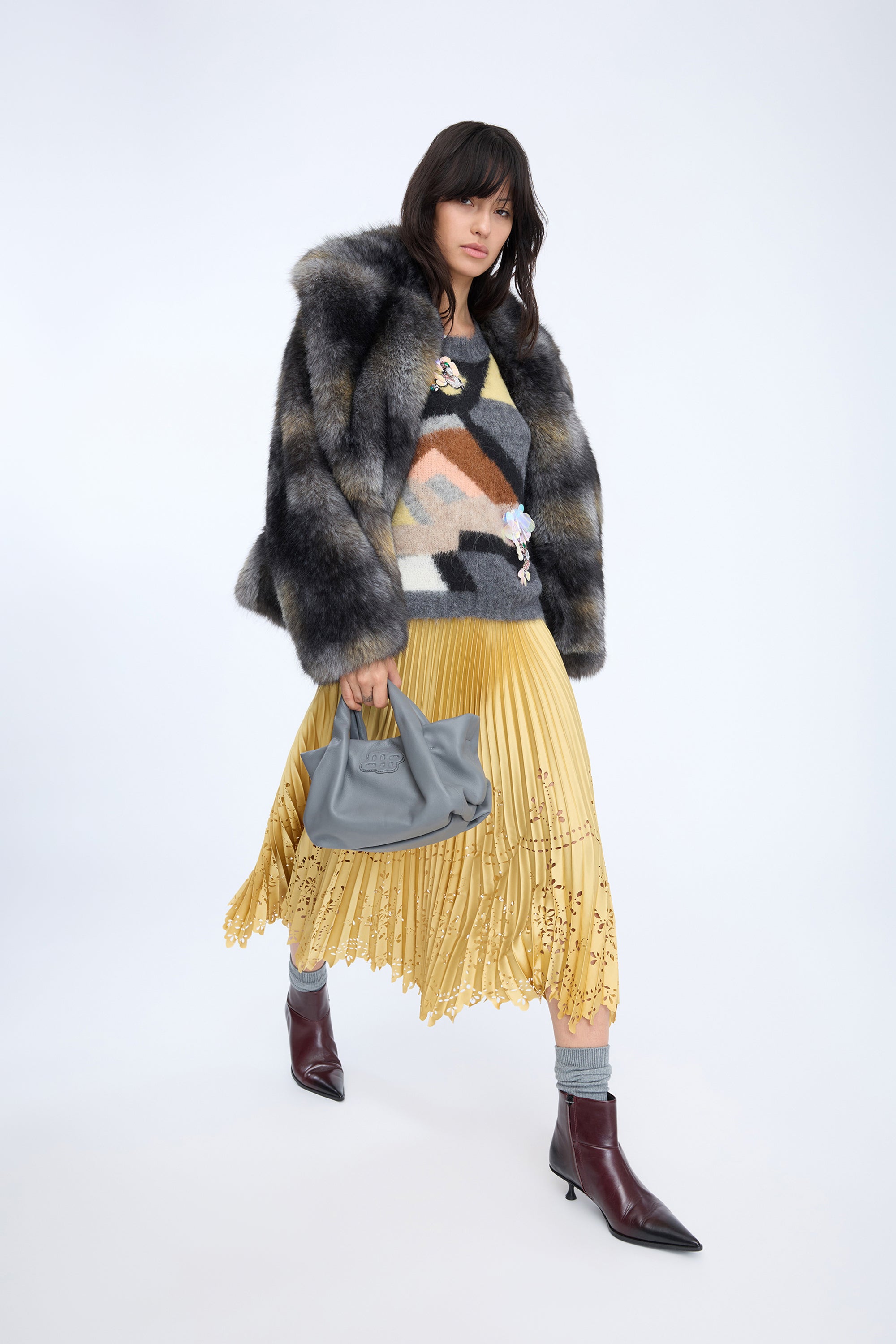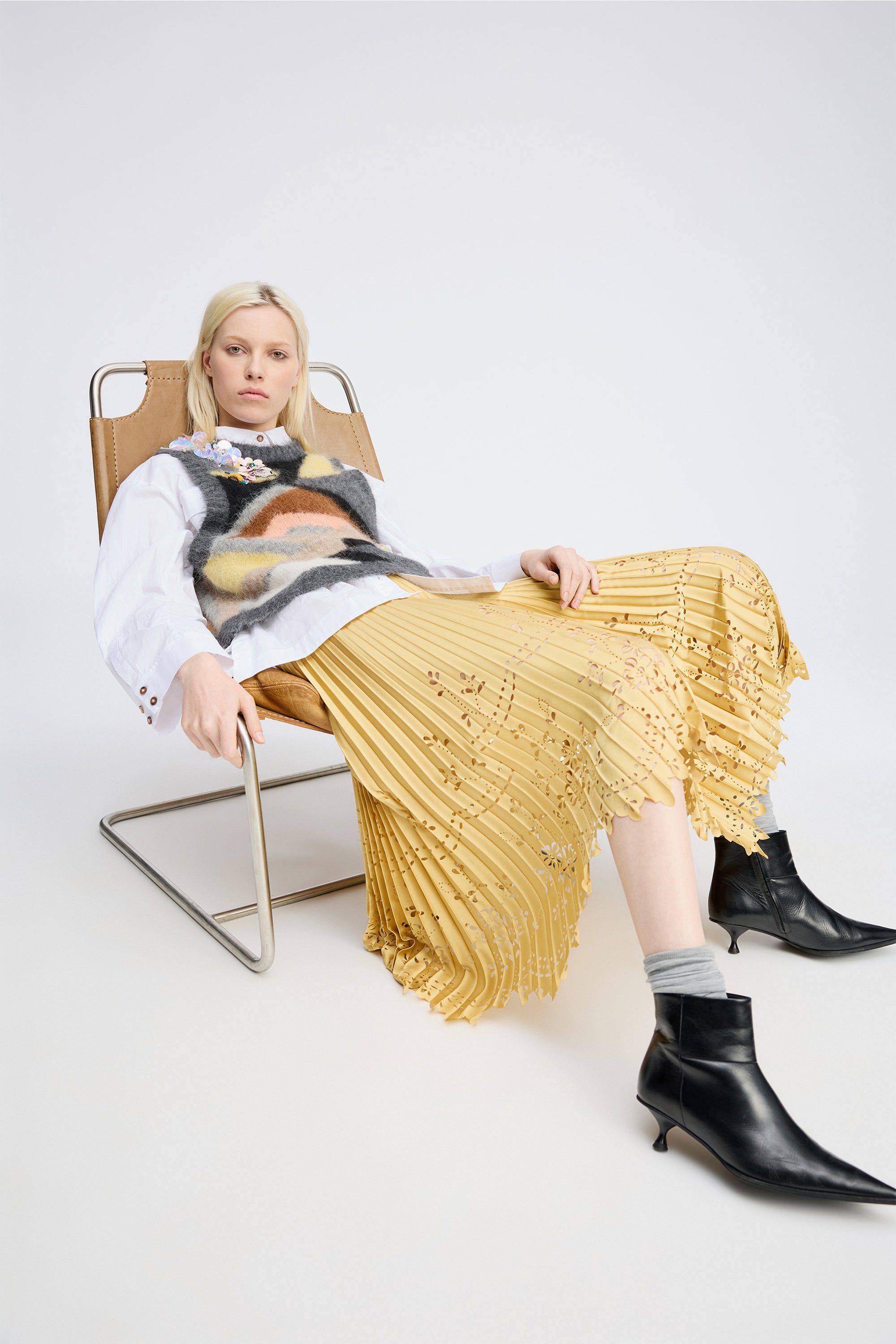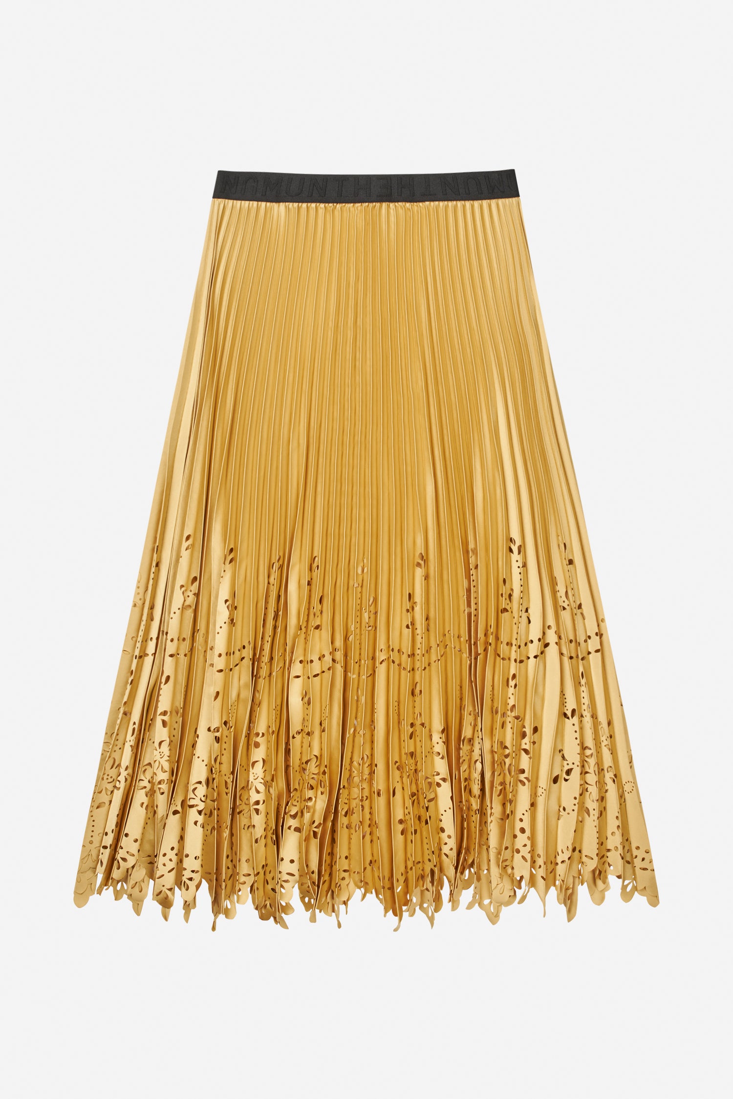 Elegant pleated skirt with beautiful laser-cut details. Designed with an elastic waistband adorned with a discreet MUNTHE logo.