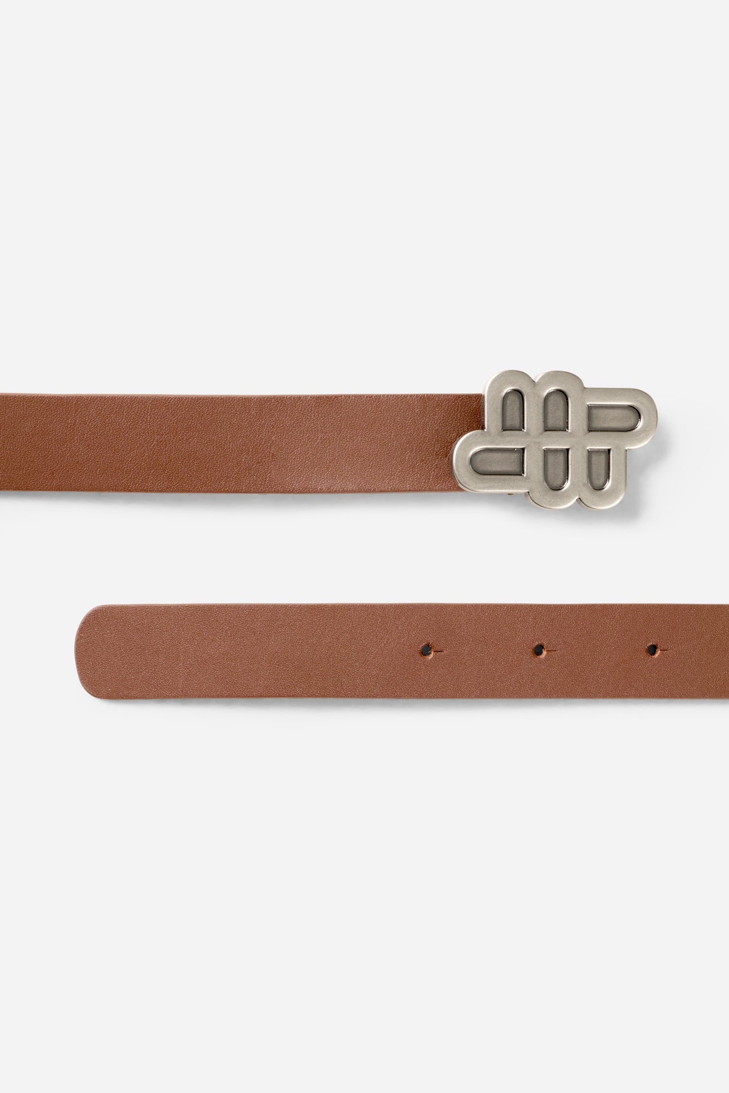 Beautiful belt in smooth leather with an elegant MUNTHE emblem buckle.