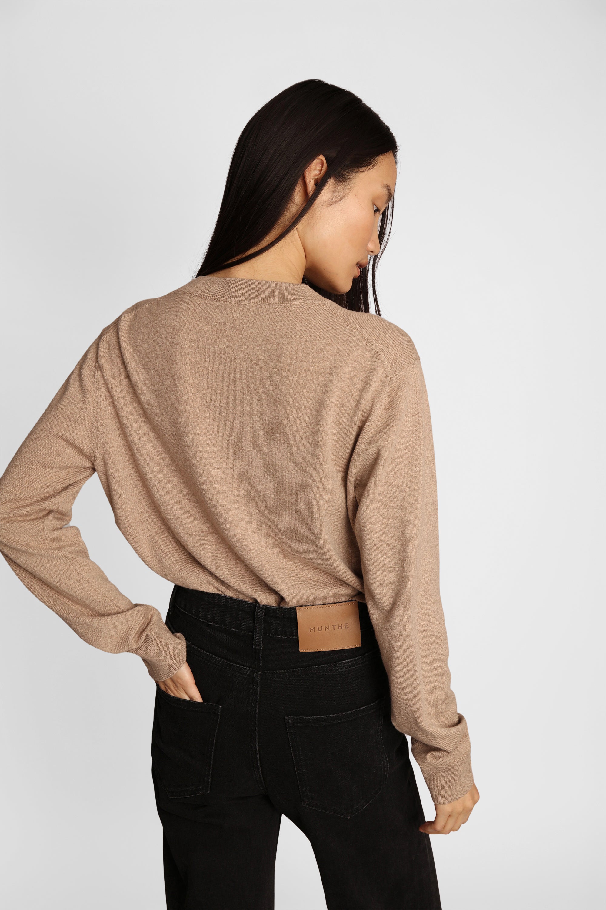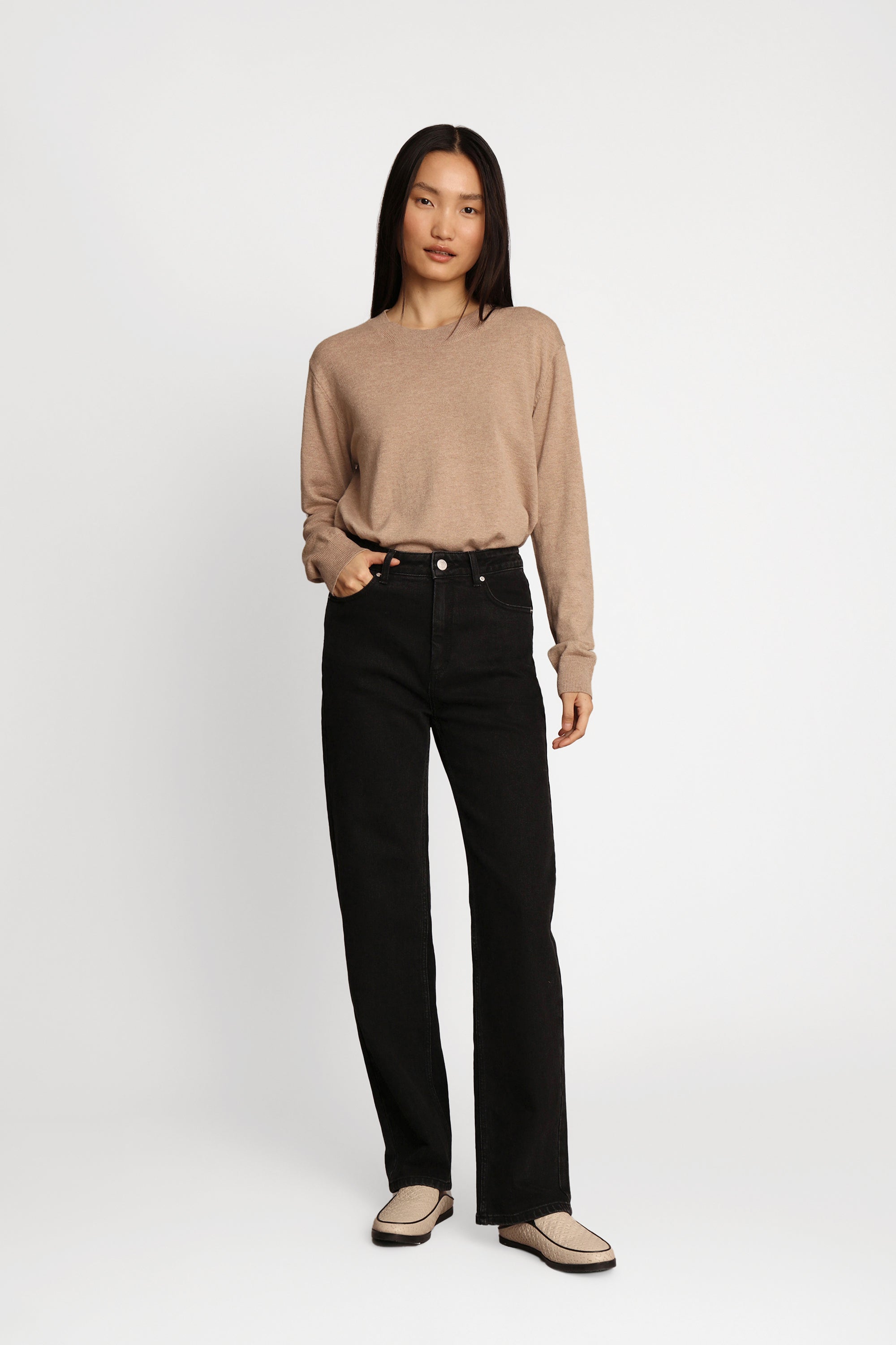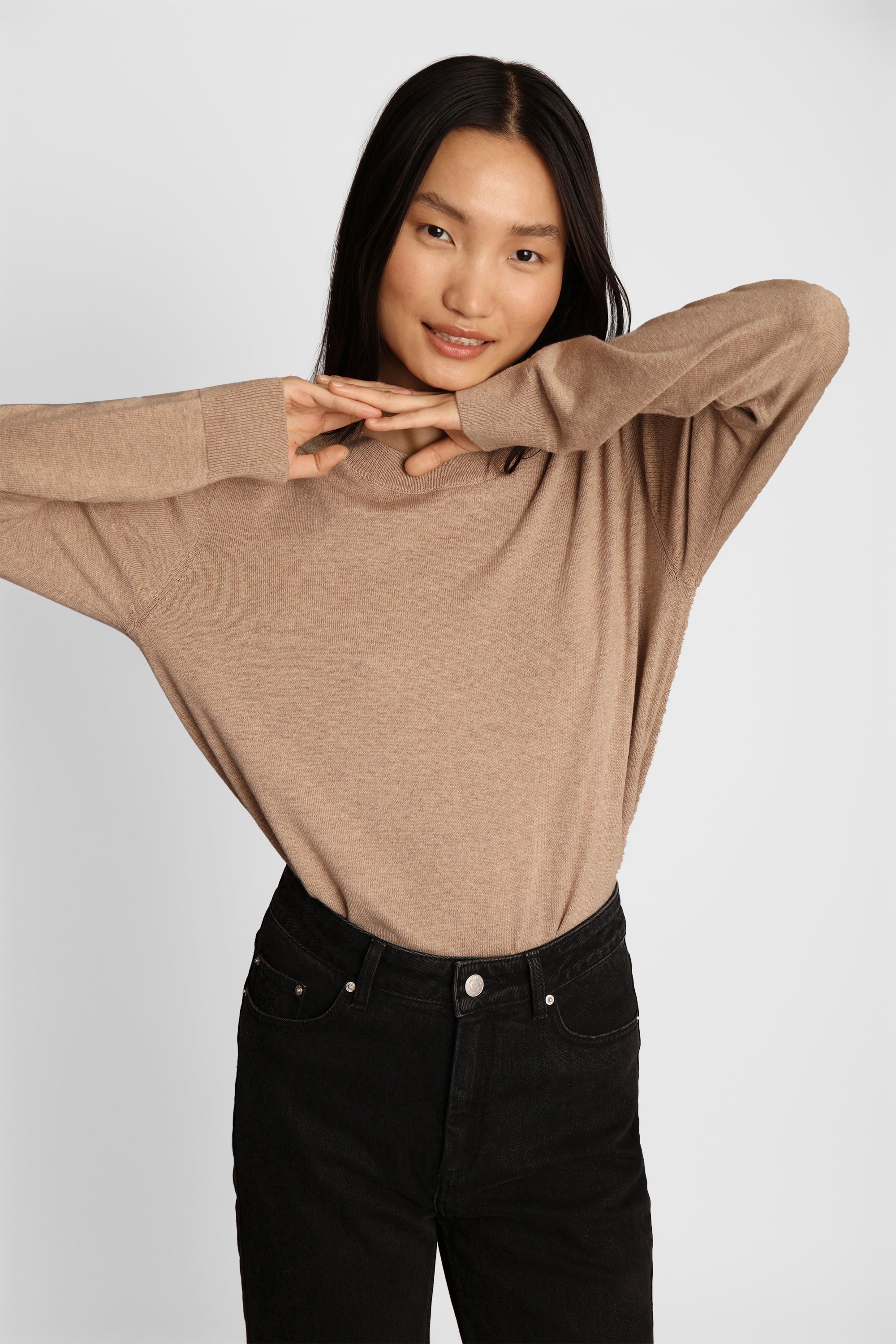 Classic light knit made from a soft merino wool blend. The knit has long sleeves, a round neck, and an elegant rib along the edges.