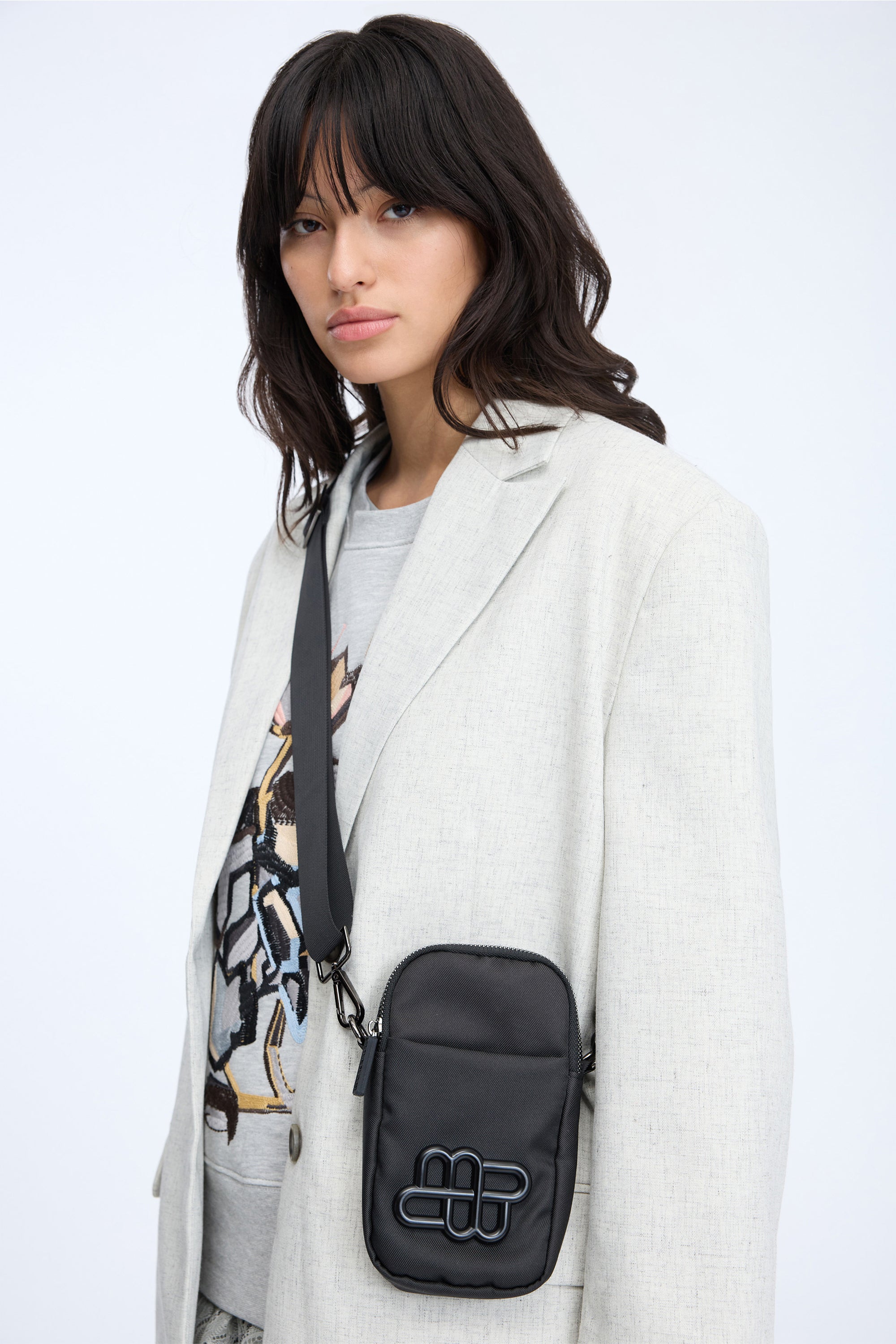 Elegant cross-body bag in durable material with a tone-on-tone MUNTHE logo on the front. The bag features a main compartment with a zipper closure, an exterior pocket, and an adjustable, detachable shoulder strap for maximum comfort.
