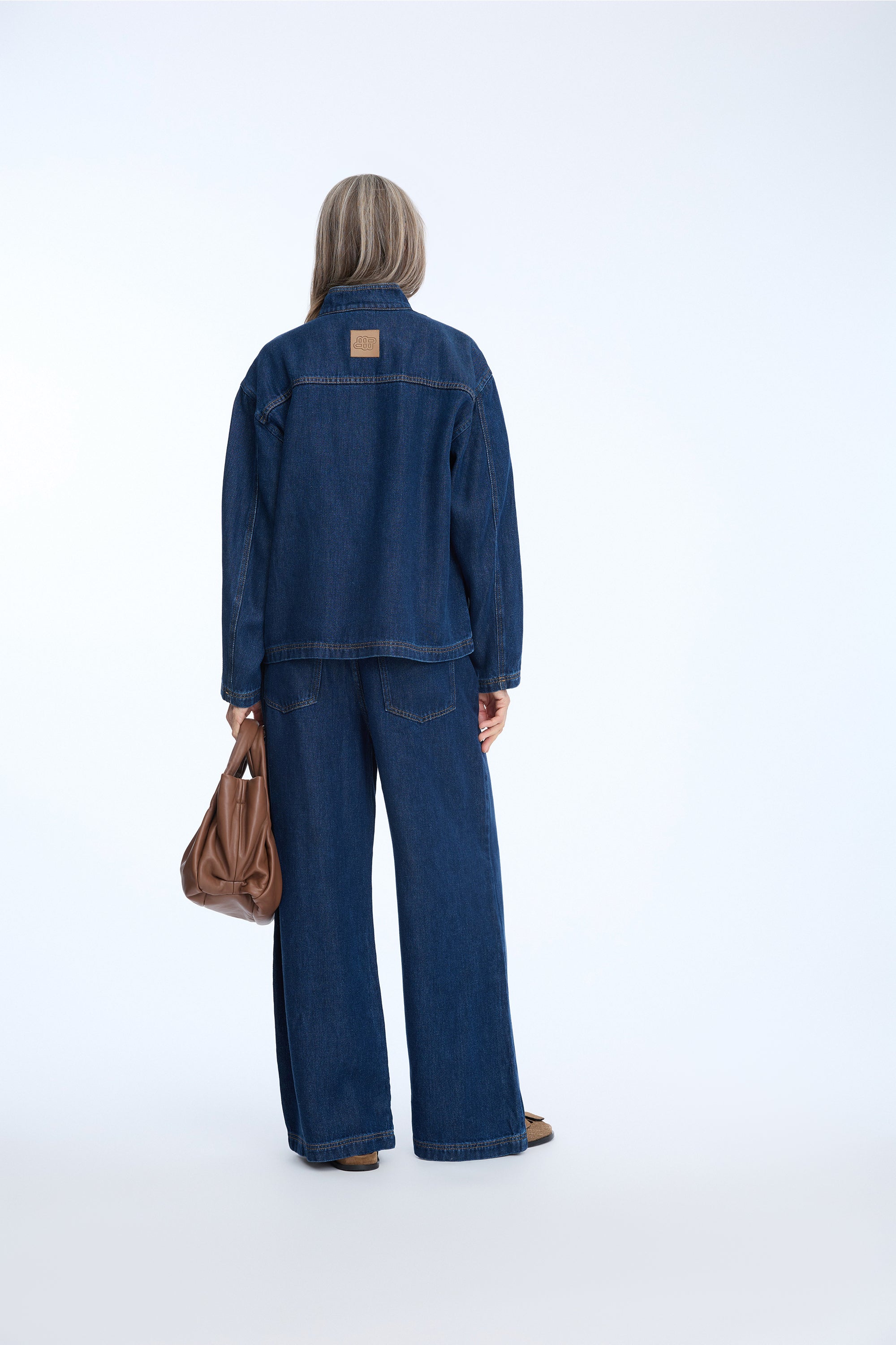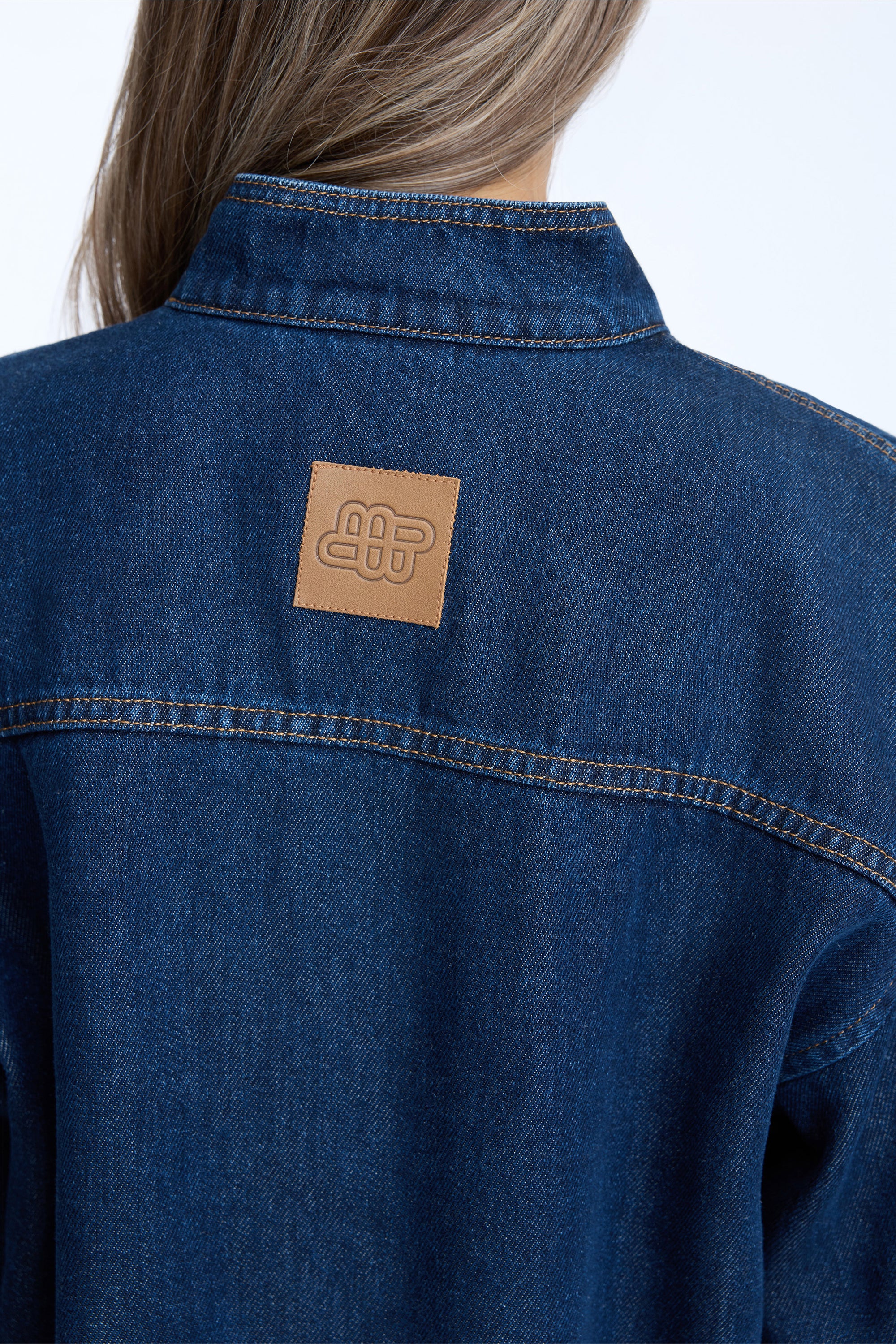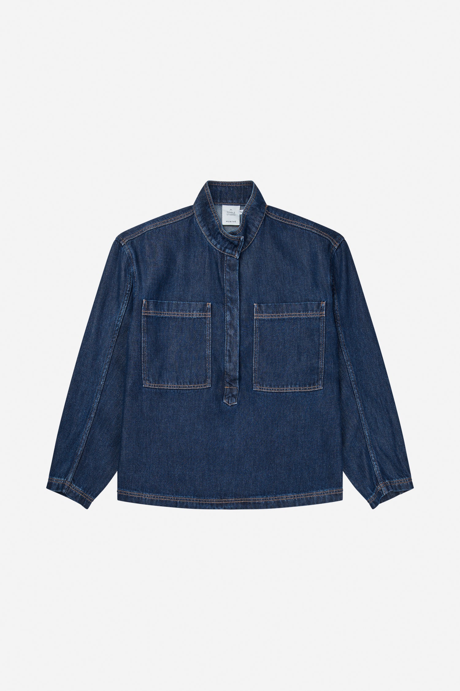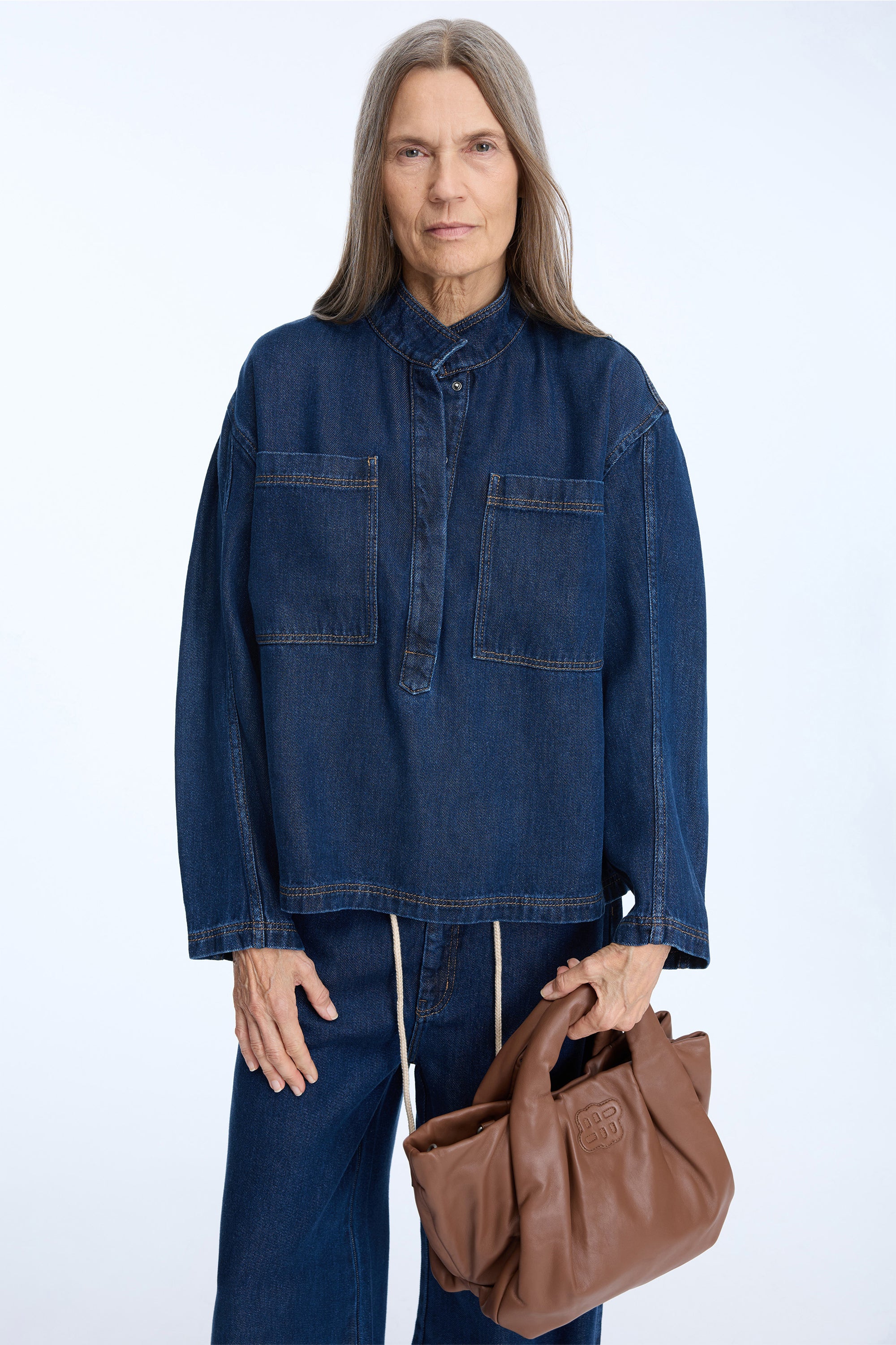A denim shirt with oversize pockets on the chest, a halfway opening and an elegant small collar. The shirt has a regular fit.
